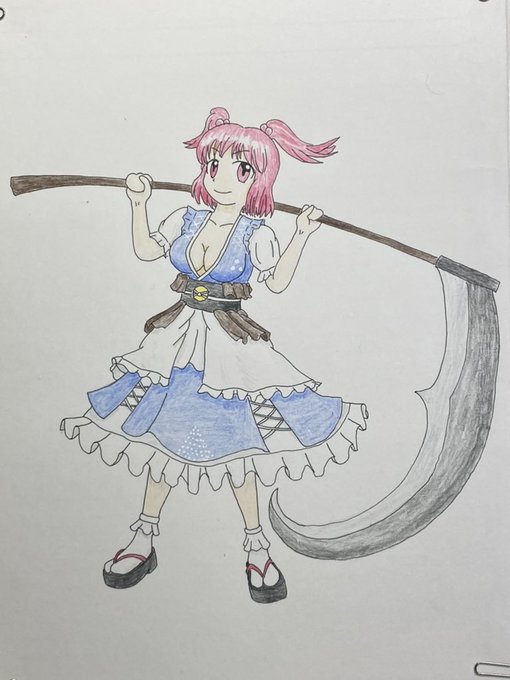 幻想郷の素敵な三途の川の船頭の小野塚小町の迫力は圧巻ですし あの鎌の威圧感は素晴らしいですね アミグリさんが過去に描かれた小町のデジタルとアナログ 色鉛筆仕様 の違いをお楽しみ頂ければ幸いです 受け継がれるべきもの